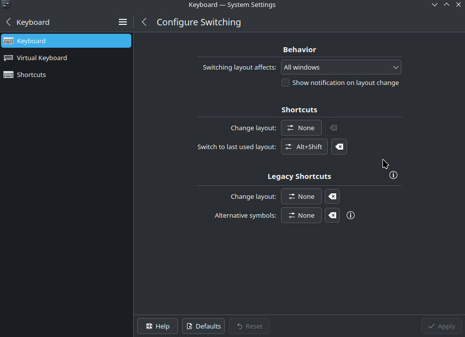 Plasma's spare layouts not working on Wayland: workaround