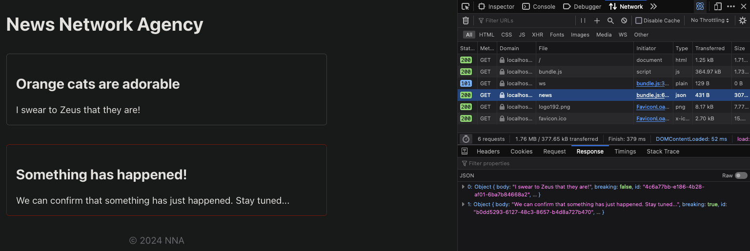 And then implement two functions to handle incoming requests. GetNews should return the array of existing items: