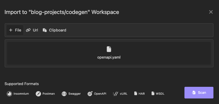 Importing our openapi.yaml file: