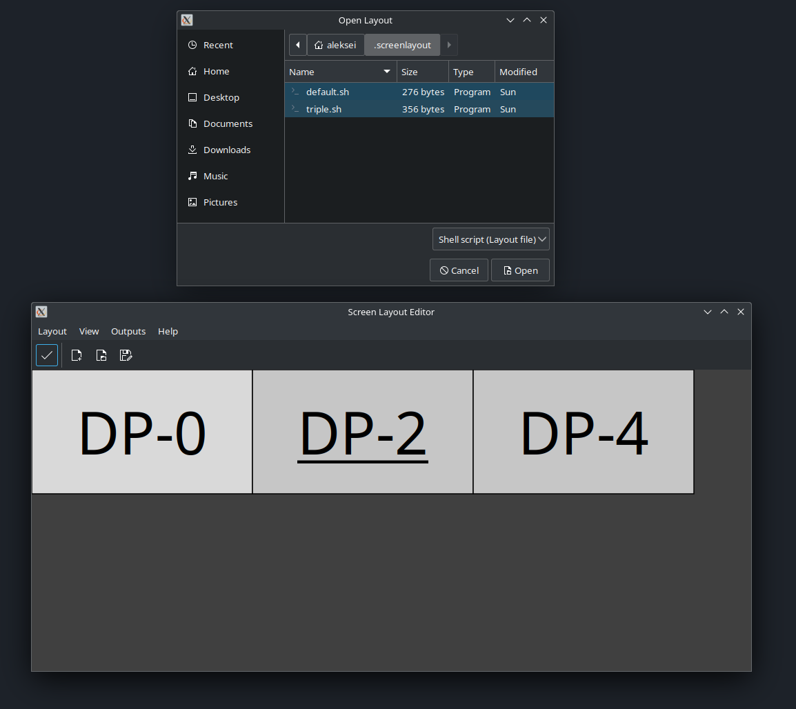 By the way, Arandr is just a frontend for a CLI tool called Xrandr, so I can switch between display layouts with a single command too. Arandr configuration files are blatantly calling Xrandr.