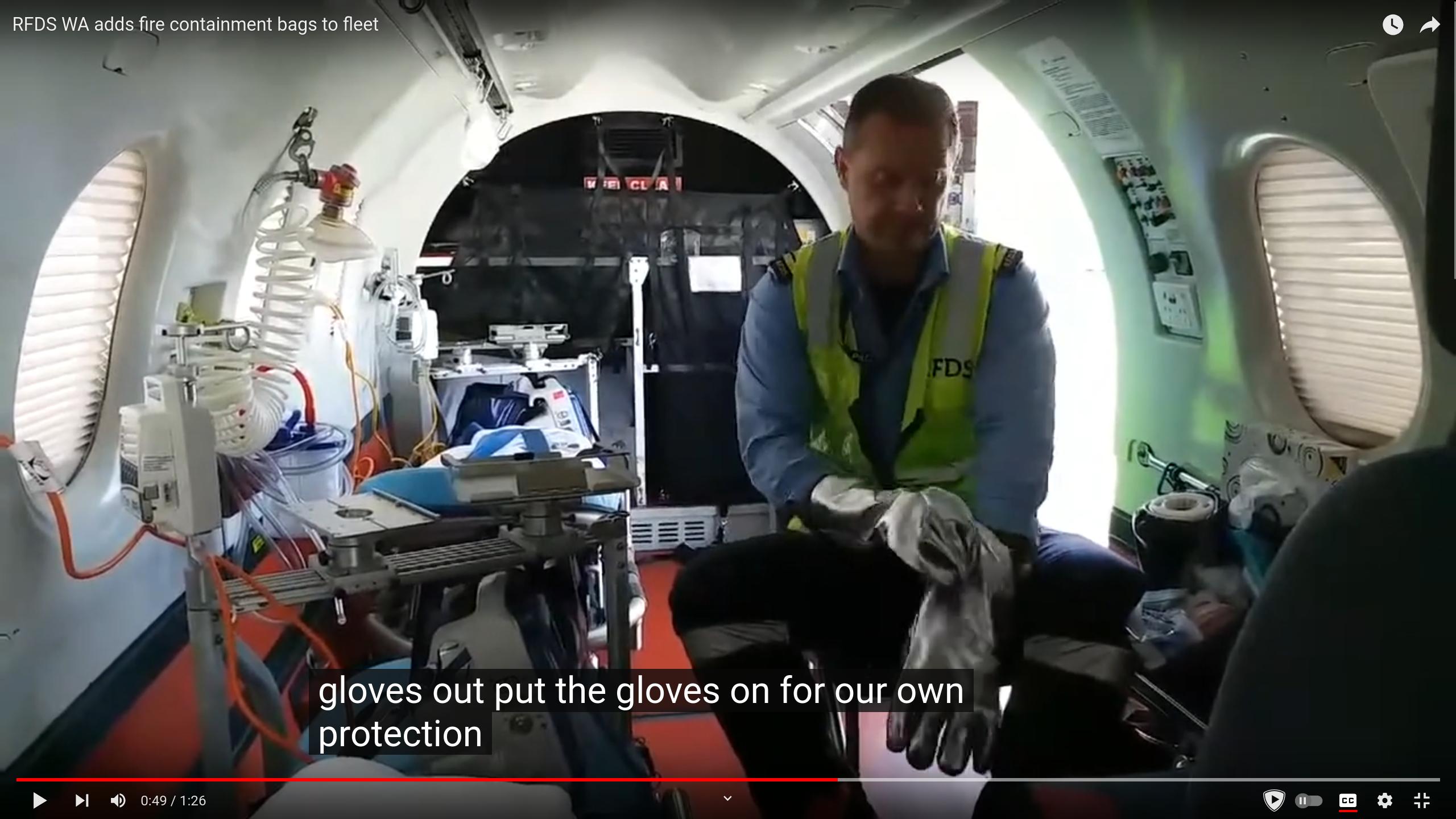 Alaska Airlines' website mentions some heat-resistant gloves. I don't know how effective they are: I couldn't find much information about them or specifications. I can only guess that their objective is to protect hands while transferring hot devices into the thermal bags. Probably they aren't designed to endure too much heat.
