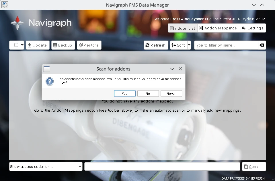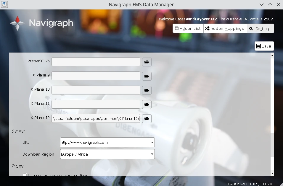 Navigraph is probably the most popular source of navigation data for flight simulators. Roughly once a month they release a new data package with updated waypoints and metadata, such as altitude and speed restrictions, as well as changes to procedures at airports around the world. Updating this data can be a bit tedious, so they offer a program to help us with that - which, of course, isn’t available on Linux. There isn't much information on this topic online, so hear me out, world wide web: you can run FMS Data Manager using WINE.