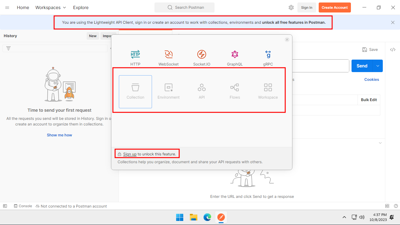 Unfortunately, it soon became evident that Insomnia was following in Postman's footsteps. After the latest update a couple of days ago, the program suggested to create an account or use a local collection. I'd chosen the latter option, but all my previously existing requests were lost! Even though I didn't have much data on my local machine, I found that experience unpleasant and worrisome.