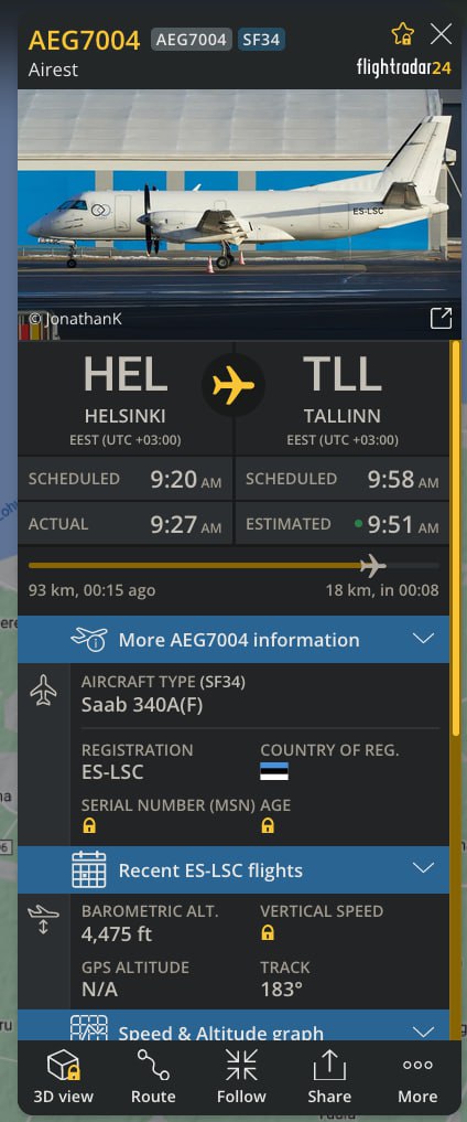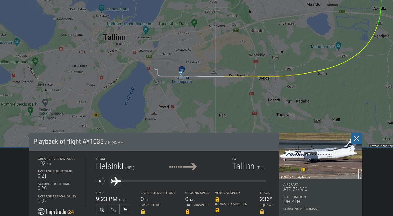 The takeoff weight was 23,954 kg, which was only 46 kg below the limit. Given that multiple ships circulate between Tallinn and Helsinki almost non-stop, I wonder what kind of cargo needs to be transported by air. As we can see, the plane was virtually full.